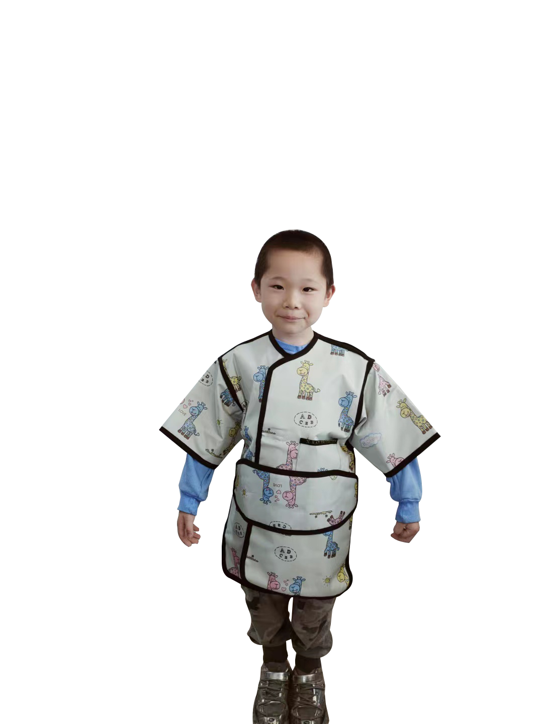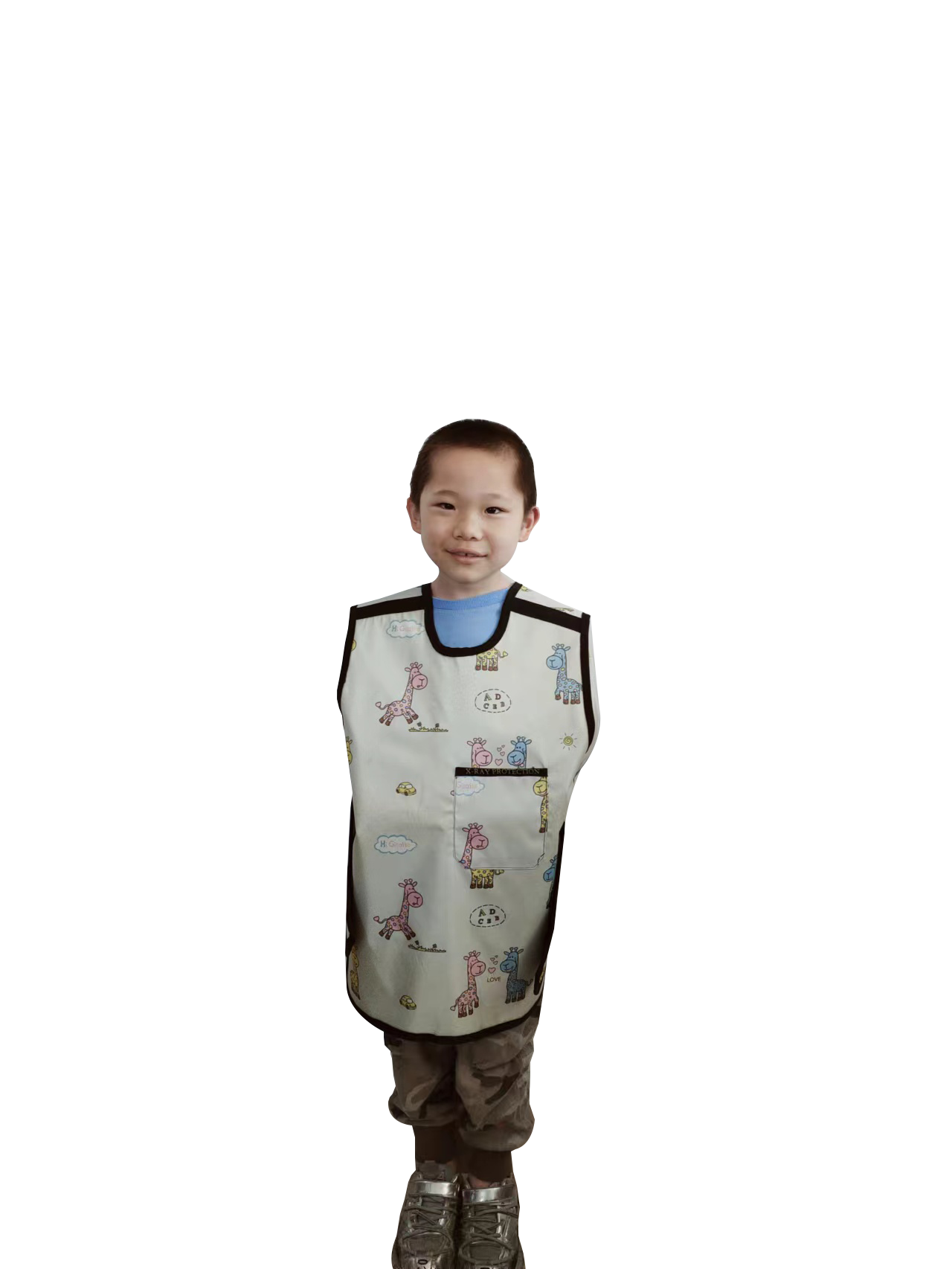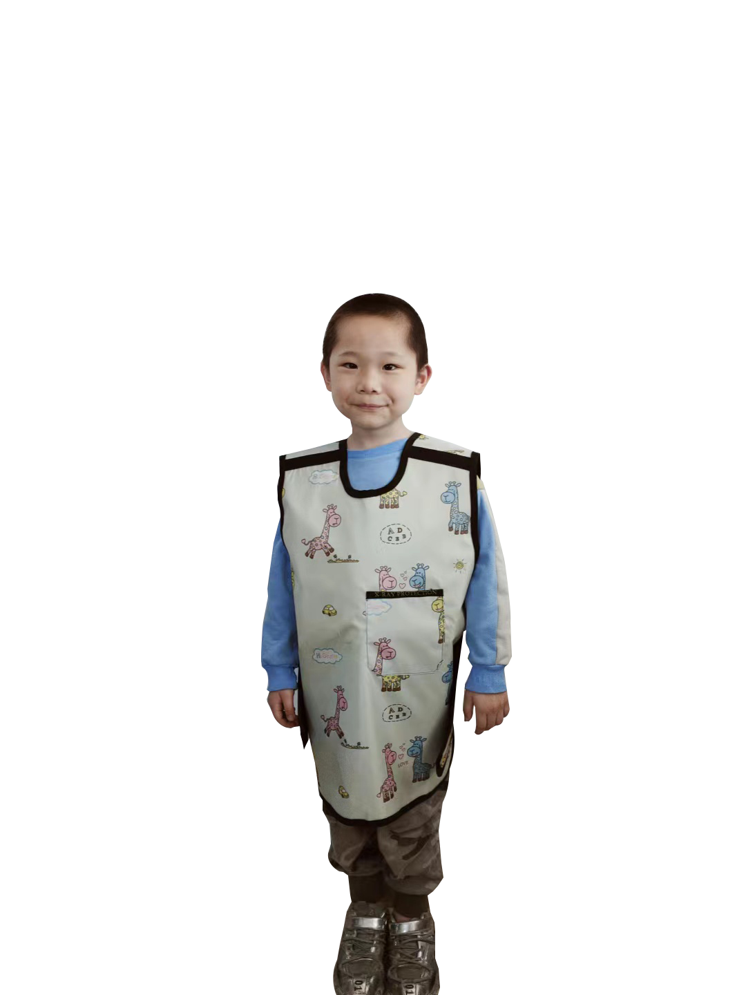 铅衣是用含铅的胶皮制作的身体防护服,其内部为铅胶皮,外部则覆盖有一层防雨布面料。